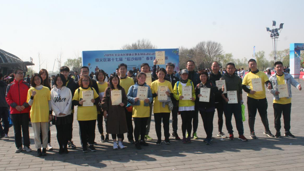4月3日,,,,,公司组织21名长跑喜欢者加入第十七届“后沙峪杯”春季长跑角逐。。。。。经由强烈角逐,,,,,公司6名选手划分在青年女子组、中年男子组、中年女子组、晚年男子组及晚年女子组取得佳绩,,,,,为公司赢得了声誉。。。。。